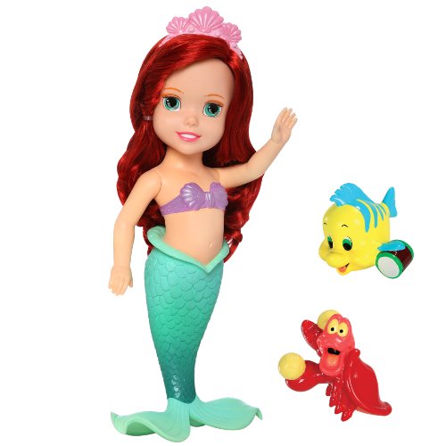 Disney Bathtime Ariel Doll Overview : For ages 3 years old and up. She is approx. 13.5"H. She sings and says over 10 phrases. Flounder and Sebastian squirt water. Fun hair play accessories. She can stand on her own. Bath Time Ariel loves being in the water. Just dip in and she will fill bath time with singing and fun. Girls can brush and style Ariels's hair making her the most beautiful Princess in the sea. Requires 3 "AAA" batteries(demos are included, but will need to be replaced). Click Here for readmore Disney Bathtime Ariel Doll OverviewAvailable and Shipping FREE at Amazon Check more Descriptions ,Reviews and Price!